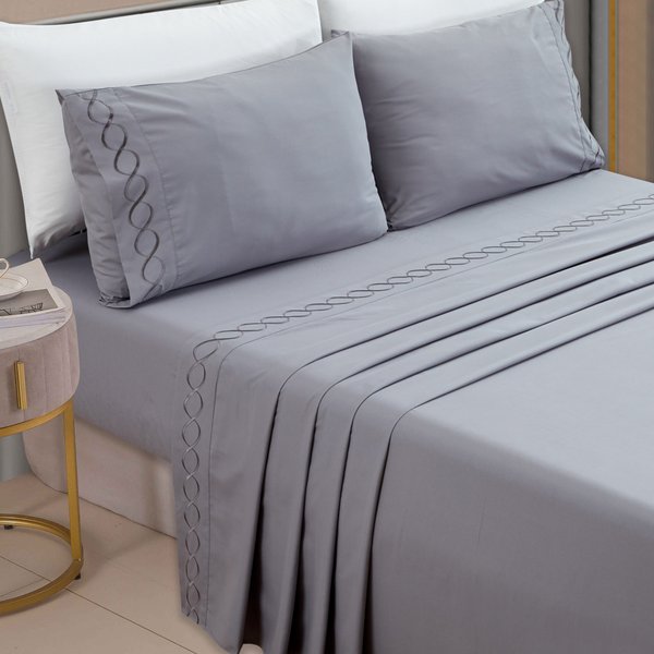 Jogo de Cama King 4 peças Toque de Algodão Rozac - Platinum Cinza Escuro