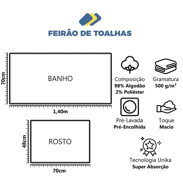 - Tamanho Toalha de Rosto