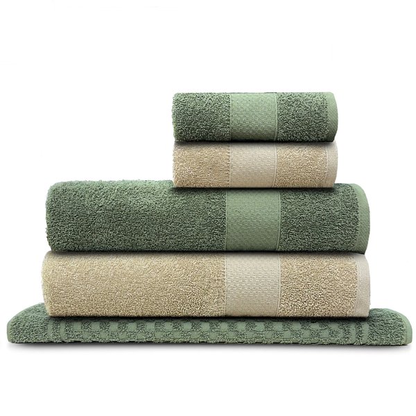 Jogo de Toalhas Gigantes 5 peças Fio Penteado 100% Algodão Premium 470g/m² - Mônaco Bege com Verde