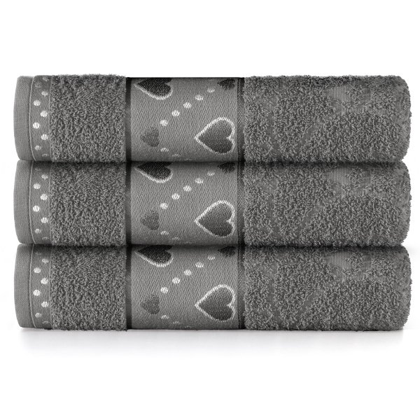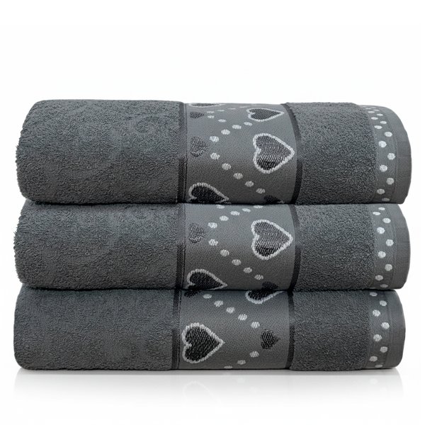 Kit 3 Peças Toalha de Banho Jacquard - Corações
