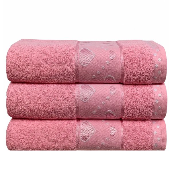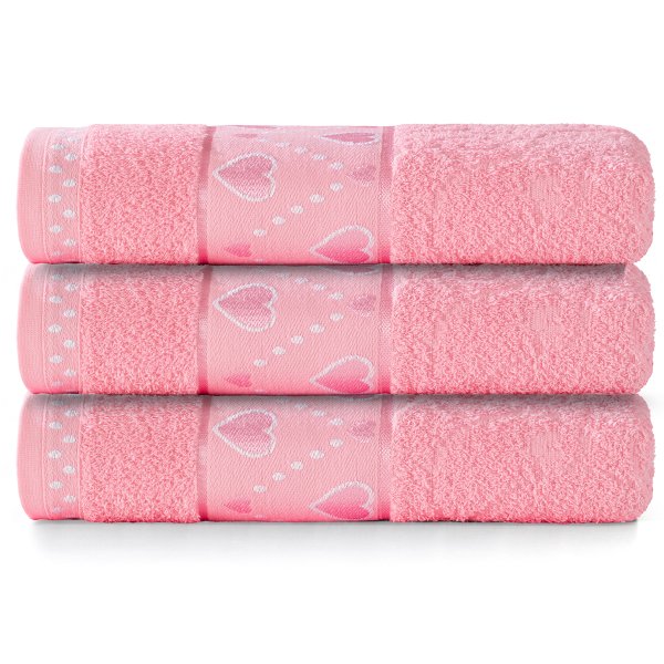 Kit 3 Peças Toalha de Banho Jacquard - Corações