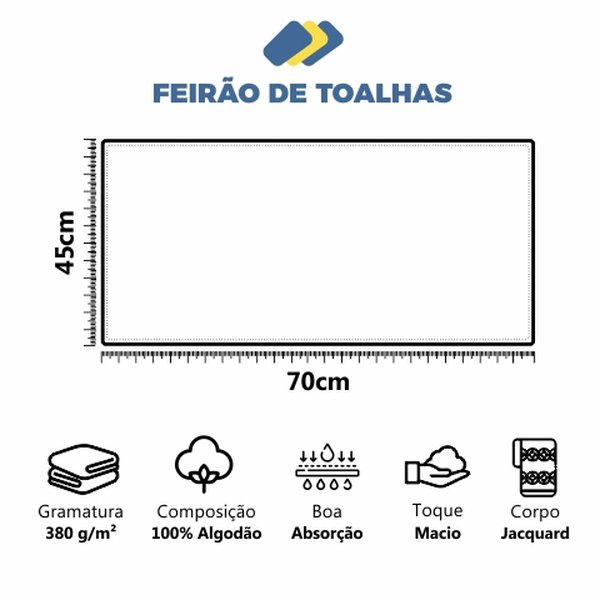 Fabricada em 100% algodão, com gramatura de 380g/m², oferecendo um toque macio e confortável. Sua boa capacidade de absorção a torna ideal para o uso diário. O corpo em jacquard confere um acabamento sofisticado e uma textura diferenciada, garantindo não só funcionalidade, mas também durabilidade e estilo.